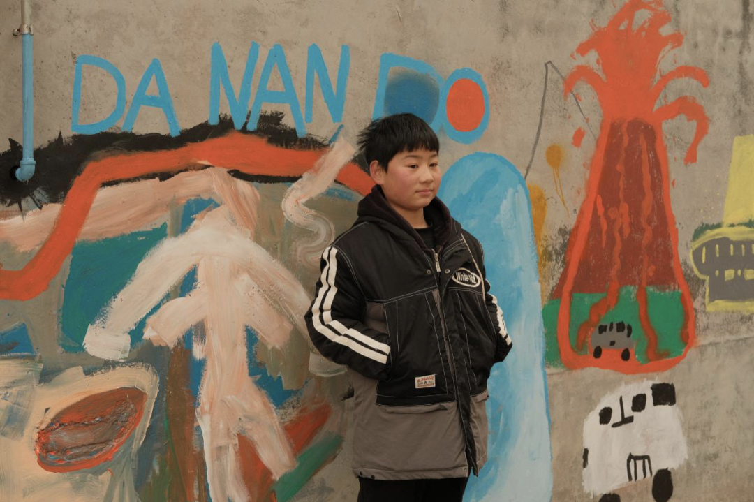 孩子们在北方村庄的水泥墙壁上涂鸦 摄影:任三克
