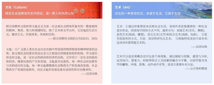 文化是各个社会、群体和社区界定和区分自己身份的重要方式;艺术是文化的一种表现形式,具有创造性。文化艺术公益则是以文化艺术为主要内容或形式的公益活动,通过艺术具象化或抽象化的表达,在一群人中形成共同认知后可以上升到文化层面,最终形成无形的公益。