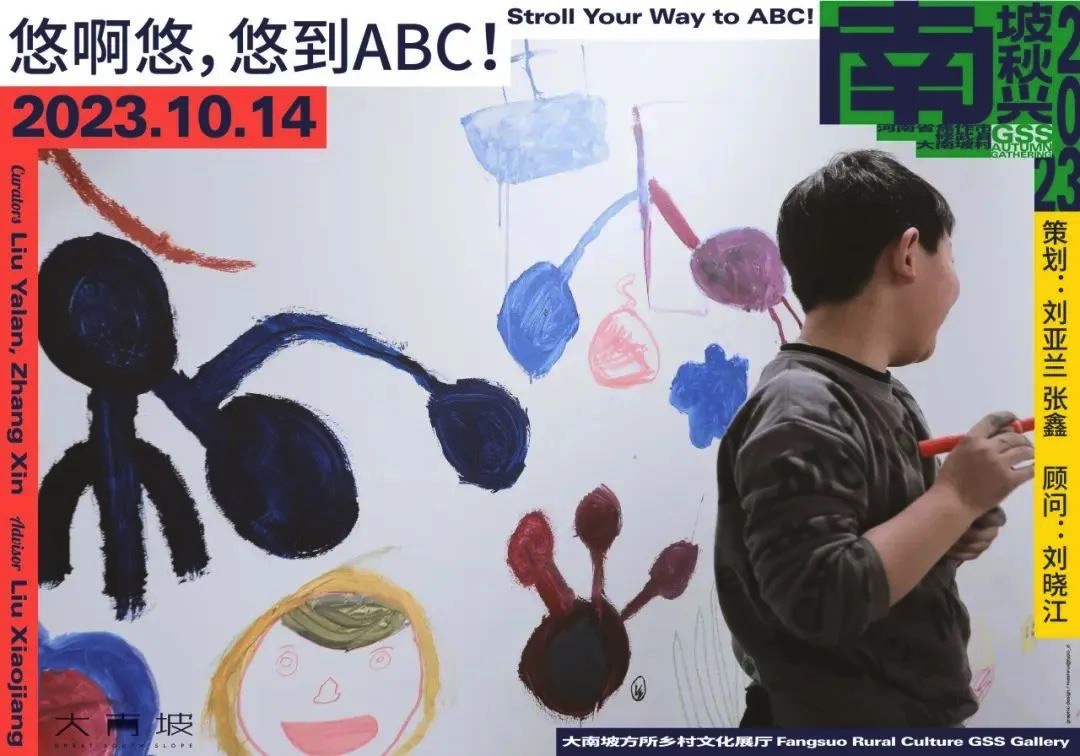 “悠啊悠,悠到ABC!”展览以孩子为主体展开叙述,展出的是大南坡儿童的创作。观众可以在展厅里看到每一个孩子的肖像和他们各自在日常生活中熟悉或陌生的风景,以及纪录孩子们游戏玩耍的影像《孩子们玩耍的地方》。该展览呈现了乡村儿童的真实生活状态,以此鼓励他们拥有一个更美好的童年。