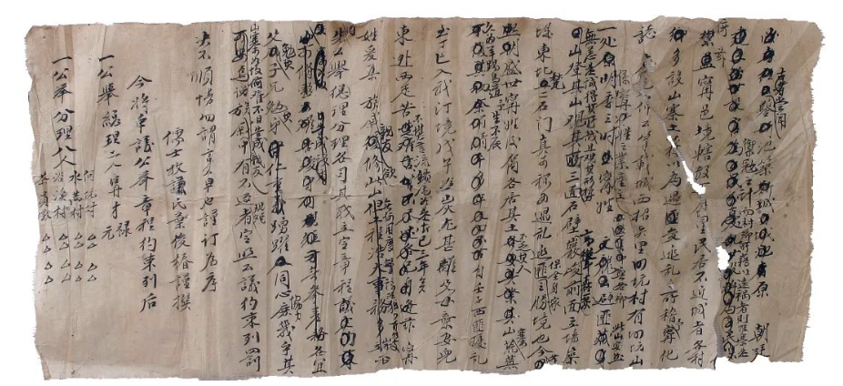 ▲乾隆年间甯氏族人维修河坑寨文书(甯膺林收藏)。图片来源:受访者提供
