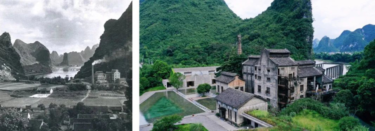 ▲阳朔县国营糖厂(左);阳朔糖舍度假酒店(右)