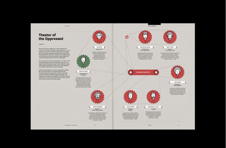 《The Outpost》的确是雄心勃勃的,它虽然以贝鲁特为杂志的基地,但它的视野是整个阿拉伯世界。杂志聚集了来自中东地区不同城市的调查记者、插画师及摄影师等创作群体,生于斯长于斯的相近背景,使得他们对中东的报道角度,必然与隔岸观火、并倾向单一化叙述的欧美媒体不同。可谓,爱之,恨之,期盼之。