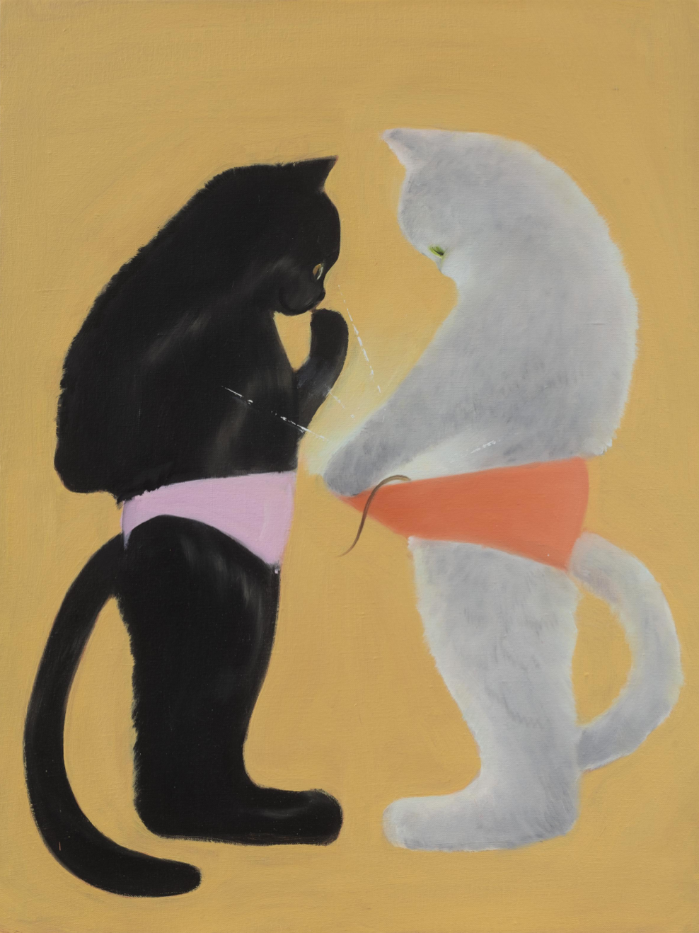▲ Wang Xiaoqu, ‘Black Cat, White Cat’, 2019, oil on canvas