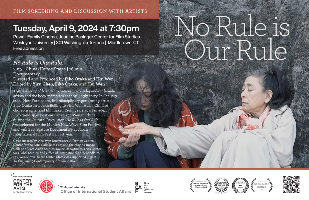支持机构:卫斯理安大学 Allbritton 中心、艺术中心、电影与动态影像学院、东亚研究学院、舞蹈系、弗里斯全球研究中心和国际学生事务办公室、北京当代艺术基金会